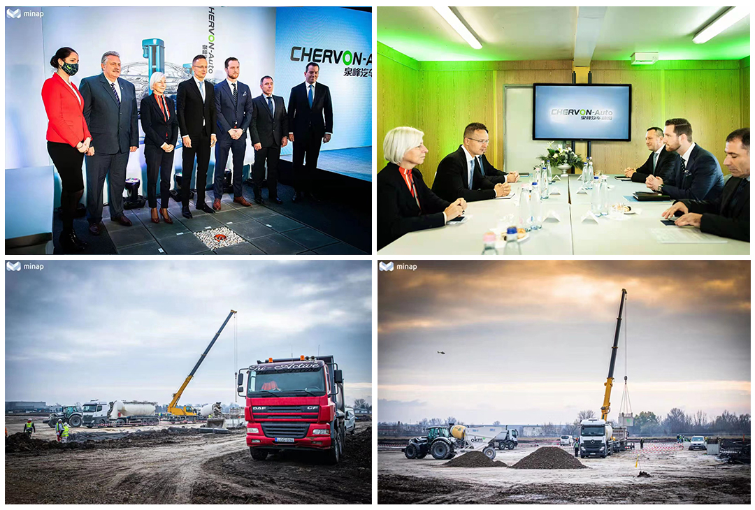 At 9:45 am Hungary time on November 18, 2021, Chervon Auto held its groundbreaking ceremony for its manufacturing facility in the Mechatronics Park in Miskolc. H.E. Minister Péter Szijjártó, the relevant government officials of Hungarian Investment and Promotion Agency and Hungarian Parliament, Mayor of Miskolc Mr. Pal Veres; Project Manager of Chervon Auto Europe project Mr. Simon Waechter; General Manager of Chervon Auto Europe Kft. Mr. Gaal Gyula and representatives of partners related to the Europe project of Chervon Auto attended the ceremony.